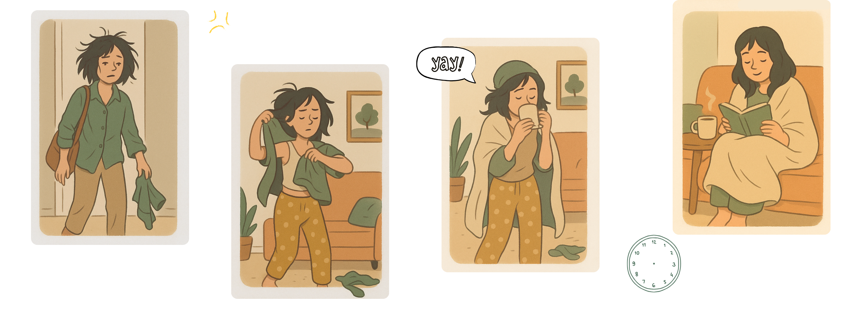 We’re not here to fix you. We’re here to walk beside you as you un-hustle, un-mask, and remember what actually feels good. Whether you’re tired of productivity pep talks or just looking for your next cozy moment of truth — you’re in the right place.